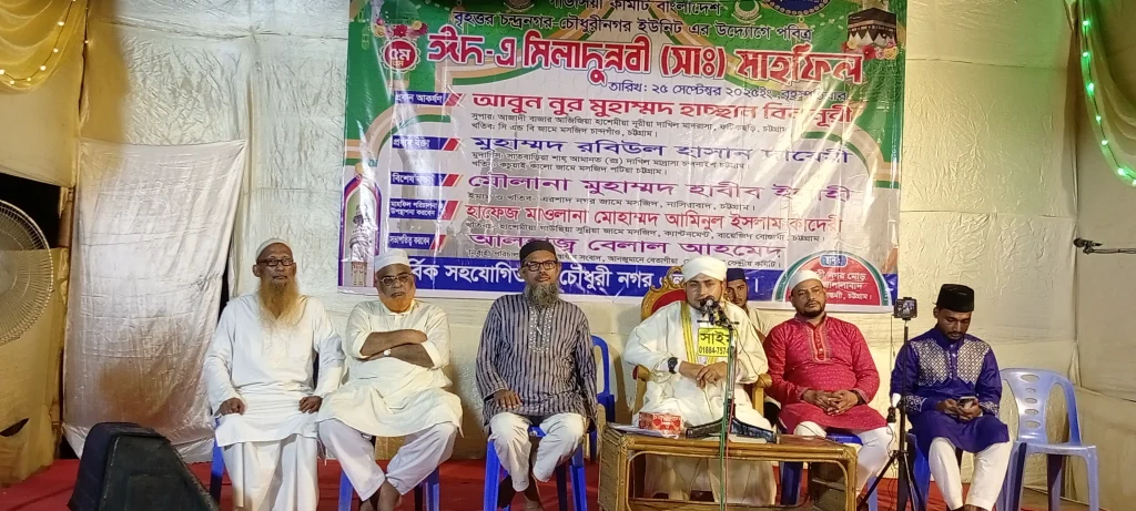 গাউছিয়া কমিটি বাংলাদেশ বৃহত্তর চন্দ্রনগর-চৌধুরী নগর ইউনিটের উদ্যোগে এবং এলাকাবাসীর সার্বিক সহযোগিতায় পবিত্র ঈদে মিলাদুন্নবী (সা.) মাহফিল অনুষ্ঠিত হয়েছে। বৃহস্পতিবার (২৫ সেপ্টেম্বর) সন্ধ্যায় চট্টগ্রাম বায়েজিদ বোস্তামী ২নং জালালাবাদ চৌধুরী নগর মোড়ে ধর্মীয় ভাবগাম্ভীর্যের মধ্য দিয়ে এ মাহফিলের আয়োজন করা হয়।