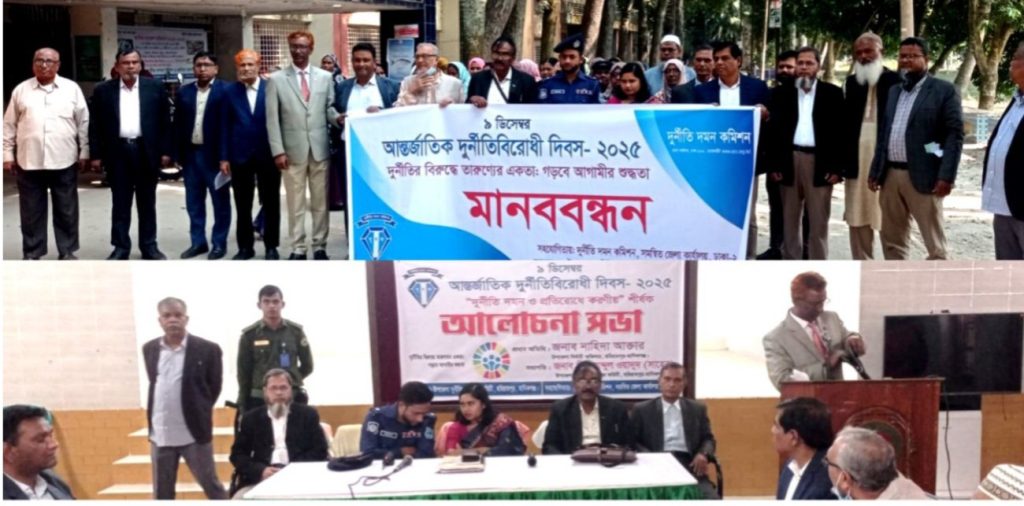 এর আগে উপজেলা চত্বরে দুর্নীতি প্রতিরোধে জনসচেতনতা বৃদ্ধির লক্ষ্যে মানববন্ধন অনুষ্ঠিত হয়। প্রধান অতিথি উপজেলা নির্বাহী কর্মকর্তা নাহিদা আক্তার বলেন, দুর্নীতি জাতির অগ্রগতির সবচেয়ে বড় বাধা। জবাবদিহিতা নিশ্চিত করতে হলে পরিবার থেকে শুরু করে কর্মস্থল পর্যন্ত সবার মধ্যে সচেতনতা বাড়াতে হবে। উপজেলা প্রশাসন দুর্নীতি দমনে জিরো টলারেন্স নীতি অনুসরণ করছে। তিনি আরও বলেন, এ ধরনের কর্মশালা মানুষের মধ্যে নৈতিকতা ও দায়িত্ববোধ বাড়াতে গুরুত্বপূর্ণ ভূমিকা রাখে। সভাপতি মীর আব্দুল ওয়াদুদ বলেন, দুর্নীতি প্রতিরোধ শুধু সরকারের কাজ নয়; এটি প্রতিটি নাগরিকের দায়িত্ব। সবাই মিলে সচেতনতা গড়ে তুলতে পারলেই সুশাসন ও স্বচ্ছ সমাজ প্রতিষ্ঠা সম্ভব। তিনি আরও বলেন, উপজেলা দুর্নীতি প্রতিরোধ কমিটি সবসময়ই জনসচেতনতা বাড়াতে কাজ করছে, এবং এই কর্মশালা তারই অংশ। শেষে দুর্নীতি প্রতিরোধে সবাইকে সক্রিয় ভূমিকা রাখার আহ্বান জানিয়ে কর্মশালা সমাপ্ত ঘোষণা করা হয়।