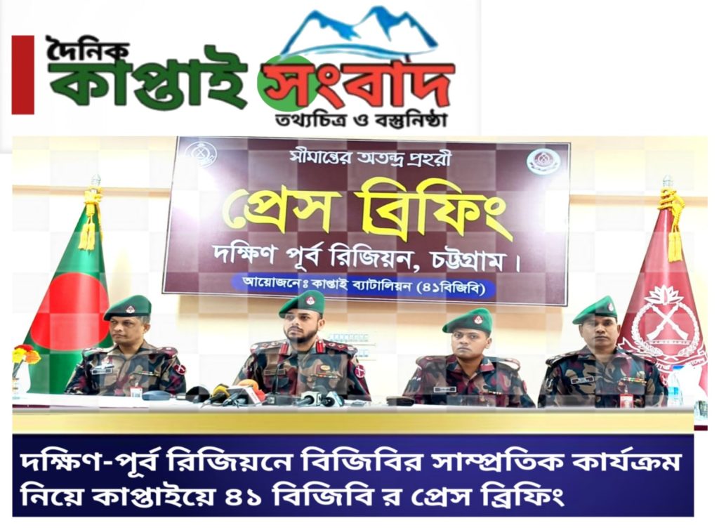 বর্ডার গার্ড বাংলাদেশ (বিজিবি)। দক্ষিণ-পূর্ব রিজিয়ন, চট্টগ্রাম-এর সদর দপ্তরের দায়িত্বপূর্ণ সীমান্ত এলাকায় সাম্প্রতিক সময়ে বিজিবি’র কার্যক্রম নিয়ে এ প্রেস ব্রিফিং আয়োজন করা হয়। রবিবার (২৮ ডিসেম্বর) সকাল ১০টায় রাঙামাটির কাপ্তাই ব্যাটালিয়ন (৪১ বিজিবি)-এর ওয়াগ্গাছড়া ব্যাটালিয়ন সদর দপ্তরের বিনোদন রুমে এ প্রেস ব্রিফিং করেন কাপ্তাই ব্যাটালিয়ন (৪১ বিজিবি)-এর অধিনায়ক লে: কর্নেল কাওসার মেহেদী, সিগন্যালস। এসময় তিনি বলেন, “বর্ডার গার্ড বাংলাদেশ (বিজিবি) সীমান্তের অতন্দ্র প্রহরী হিসেবে দেশের সার্বভৌমত্ব রক্ষা, সীমান্ত সুরক্ষা, চোরাচালান প্রতিরোধ, মাদক, মানব ও অস্ত্র পাচার রোধ, আন্তঃসীমান্ত অপরাধ দমন, অভ্যন্তরীণ আইন-শৃঙ্খলা রক্ষা এবং যে কোনো জরুরি পরিস্থিতিতে সততা, নিষ্ঠা ও শৃঙ্খলার সাথে অর্পিত দায়িত্ব নিরলসভাবে পালন করে যাচ্ছে। এসব কার্যক্রম মিডিয়ার মাধ্যমে দেশের জনসাধারণকে অবহিত করার নিমিত্তে মাঠ পর্যায়ে দক্ষিণ-পূর্ব রিজিয়ন, চট্টগ্রাম-এর পক্ষ থেকে এ সংবাদ সম্মেলনের আয়োজন করা হয়েছে। তিনি আরও বলেন, বাংলাদেশের মোট ৪,৪২৭ কিলোমিটার (ভারতের সাথে ৪,১৫৬ কিলোমিটার এবং মায়ানমারের সাথে ২৭১ কিলোমিটার) সীমান্তের মধ্যে দক্ষিণ-পূর্ব রিজিয়নের দায়িত্বপূর্ণ এলাকা ৫৪০ কিলোমিটার নিয়ে বেষ্টিত, যা চট্টগ্রাম জেলার মীরসরাই উপজেলার অন্তর্গত আমতলী হতে রাঙামাটি জেলার জুরাছড়ি উপজেলার কচুতলী পর্যন্ত বিস্তৃত। দক্ষিণ-পূর্ব রিজিয়নের আওতাধীন সর্বমোট ১৩টি ব্যাটালিয়ন সীমান্ত সুরক্ষার দায়িত্ব পালন করছে। একই সাথে দুর্গম সীমান্ত অঞ্চলে বসবাসরত সাধারণ মানুষের নিরাপত্তা, জীবনমান উন্নয়ন এবং সামাজিক কল্যাণে বিজিবি সবসময় অগ্রণী ভূমিকা পালন করে আসছে। সীমান্ত সুরক্ষার পাশাপাশি দেশের যে কোনো দুর্যোগ মোকাবেলায় বিজিবি অসহায় ও বিপদাপন্ন জনগোষ্ঠীর পাশে দাঁড়িয়েছে। সম্মানিত মহাপরিচালক, বর্ডার গার্ড বাংলাদেশ-এর মূলনীতি “বিজিবি সীমান্তের নিরাপত্তা ও আস্থার প্রতীক” বাস্তবায়নে প্রতিটি বিজিবি সদস্য বদ্ধপরিকর। একটি প্রশিক্ষিত ও পেশাদার বাহিনী হিসেবে দায়িত্ব পালনের মাধ্যমে পার্বত্য চট্টগ্রামে বিজিবি সাধারণ মানুষের আস্থা অর্জন করেছে বলে তিনি আশাবাদ ব্যক্ত করেন। প্রেস ব্রিফিংয়ে সাংবাদিকদের এক প্রশ্নের জবাবে তিনি বলেন, দক্ষিণ-পূর্ব রিজিয়ন, চট্টগ্রাম-এর অধীনস্থ ইউনিটসমূহ চলতি বছরে অভিযান পরিচালনা করে ২৯ জন আসামিসহ ৫৮,৭৯,১৩৫/- টাকার মাদক এবং ২৭,৭১,৪৯,৬৮৪/- টাকার অন্যান্য মালামালসহ সর্বমোট ২৮,৩০,২৮,৮১৯/- (আটাশ কোটি ত্রিশ লক্ষ আটাশ হাজার আটশত উনিশ) টাকার অধিক মূল্যের চোরাচালানি মালামাল আটক করতে সক্ষম হয়েছে। এরই ধারাবাহিকতায় দায়িত্বপূর