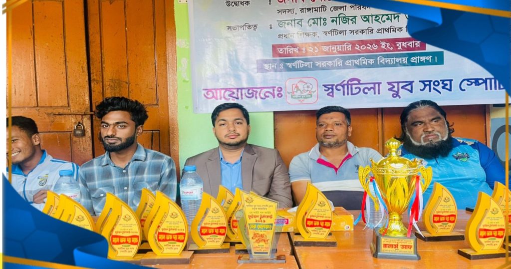 খেলাধুলার মাধ্যমেই সুস্থ, শৃঙ্খলাবান ও দেশপ্রেমিক প্রজন্ম গড়ে তোলা সম্ভব বলে মন্তব্য করেছেন রাঙামাটি পার্বত্য জেলা পরিষদের সদস্য মো. হাবীব আজম। তিনি বলেন, আজকের তরুণরাই আগামী দিনের বাংলাদেশ। তাদের সঠিক পথে পরিচালিত করতে খেলাধুলার কোনো বিকল্প নেই। স্বর্ণটিলা যুব সংঘ স্পোর্টিং ক্লাবের উদ্যোগে আয়োজিত ডে-নাইট নকআউট ফুটবল টুর্নামেন্ট–২০২৬ এর উদ্বোধন, সমাপনী ও পুরস্কার বিতরণী অনুষ্ঠানে প্রধান অতিথির বক্তব্যে তিনি এসব কথা বলেন। বৃহস্পতিবার (২২ জানুয়ারি) বিকাল ৪টায় তবলছড়ি স্বর্ণটিলা সরকারি প্রাথমিক বিদ্যালয় মাঠে অনুষ্ঠিত এ টুর্নামেন্টে স্থানীয় ক্রীড়াপ্রেমী দর্শক ও যুবসমাজের স্বতঃস্ফূর্ত উপস্থিতিতে মাঠটি উৎসবমুখর হয়ে ওঠে। প্রধান অতিথির বক্তব্যে মো. হাবীব আজম বলেন, বর্তমান সময়ে তরুণ সমাজ নানা ধরনের নেতিবাচক আসক্তির দিকে ঝুঁকে পড়ছে। মোবাইল আসক্তি, অনলাইন গেম, জুয়া ও মাদক তাদের ভবিষ্যৎকে ধ্বংসের মুখে ঠেলে দিচ্ছে। এসব থেকে মুক্তির সবচেয়ে কার্যকর উপায় হলো নিয়মিত খেলাধুলা। তিনি আরও বলেন, খেলাধুলা শুধু শরীরচর্চার মাধ্যম নয়, এটি মানুষকে শৃঙ্খলাবদ্ধ করে, নেতৃত্বের গুণাবলি তৈরি করে এবং আত্মবিশ্বাস গড়ে তোলে। আজ আমাদের মেয়েরা আন্তর্জাতিক অঙ্গনে দেশের মুখ উজ্জ্বল করছে। আমিও চাই আমাদের ছেলেরা খেলাধুলার মাধ্যমে নিজেদের গড়ে তুলুক এবং একদিন দেশের পতাকা বিশ্বমঞ্চে তুলে ধরুক। অনুষ্ঠানটি সঞ্চালনা করেন স্বর্ণটিলা যুব সংঘ স্পোর্টিং ক্লাবের সাধারণ সম্পাদক মো. ওয়াছির জামান। বিশেষ অতিথি হিসেবে উপস্থিত ছিলেন রাঙামাটি জেলা যুবদলের সহ-সাংগঠনিক সম্পাদক মো. নজরুল করিম, জেলা যুবদলের সদস্য ও ৫ নং ওয়ার্ড যুবদলের সভাপতি মো. শহিদুল ইসলাম, আমানত বাগ স্পোর্টিং ক্লাবের সভাপতি আব্দুল গফুর এবং রাঙামাটি সরকারি কলেজের সাংগঠনিক সম্পাদক আলভি হাসান নাঈম। অনুষ্ঠানে বক্তারা বলেন, খেলাধুলা যুবসমাজকে মাদক, অপরাধ ও সামাজিক অবক্ষয় থেকে দূরে রাখতে গুরুত্বপূর্ণ ভূমিকা রাখে। নিয়মিত ক্রীড়া প্রতিযোগিতা আয়োজনের মাধ্যমে তরুণদের মাঝে শৃঙ্খলা, সৌহার্দ্য ও দেশপ্রেমের চর্চা আরও বেগবান হবে।