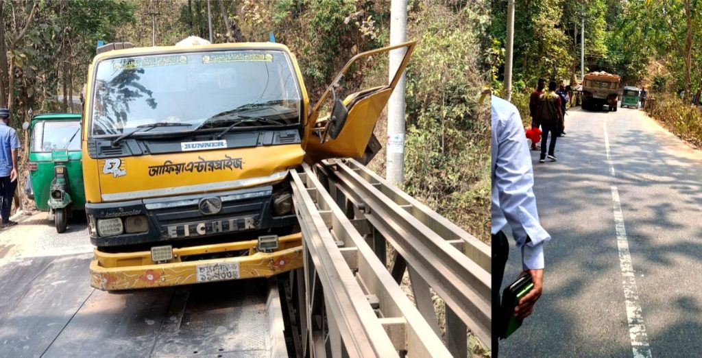ব্যাঙছড়ি স্টিল ব্রিজে নিয়ন্ত্রণ হারিয়ে দুর্ঘটনা; কিছু সময় বন্ধ ছিল বড় যান চলাচল