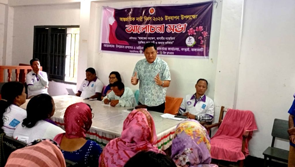 আন্তর্জাতিক নারী দিবস উদযাপন উপলক্ষে কাপ্তাইয়ে র্যালী ও আলোচনা সভা অনুষ্ঠিত হয়েছে। কাপ্তাই উপজেলা প্রশাসন ও উপজেলা মহিলা বিষয়ক অধিদপ্তর এর আয়োজনে রবিবার ( ৮ মার্চ) সকালে উপজেলার ৫ নং ওয়াগ্গা ইউনিয়ন পরিষদের হল রুমে আলোচনা সভা অনুষ্ঠিত হয়। এতে প্রধান অতিথির বক্তব্য রাখেন চন্দ্রঘোনা খ্রীষ্টিয়ান হাসপাতালের পরিচালক ডা: প্রবীর খিয়াং।আজকের পদক্ষেপ, আগামীর ন্যায়বিচার সুরক্ষিত হোক নারী ও কন্যার অধিকার ” প্রতিপাদ্যে আলোচনা সভায় প্রধান অতিথির বক্তব্যে তিনি বলেন, নারী পূরুষ সমান অধিকার থাকা সত্বেও এখনো নারীরা অনেক কর্মক্ষেত্রে বৈষ্যম্যের স্বীকার হচ্ছে। সমাজে পূরুষের দৃষ্টিভঙ্গি পরিবর্তন করে, নারীদের প্রতি সহানুভূতি প্রদর্শন করে বৈষম্য দূর করা সম্ভব হবে। উপজেলা মহিলা বিষয়ক কর্মকর্তা রিনি চাকমার সভাপতিত্বে চন্দ্রঘোনা খ্রীস্টিয়ান হাসপাতালের কম্প্রেহেনসি়ভ কমিউনিটি হেলথ প্রোগামের প্রোগাম ম্যানেজার বিজয় মারমার সঞ্চালনায় এসময় বিশেষ অতিথির বক্তব্য রাখেন ৫ নং ওয়াগ্গা ইউনিয়ন পরিষদের চেয়ারম্যান চিরনজীত তনচংগ্যা, হিল ফ্লাওয়ারের মনিটরিং অফিসার মিলন চাকমা এবং রাঙামাটি জেলা পরিষদের অন্তর্ভুক্তিমূলক শিক্ষার উন্নয়ন এর মাধ্যমে পার্বত্য চট্টগ্রামে মেয়ে শিশু ও নারীর ক্ষমতায়ন প্রকল্পের এডুকেশন ফ্যাসিলিটেটর মংসিংউ মারমা। সমগ্র অনুষ্ঠানটির সার্বিক তত্ত্বাবধানে ছিলেন উপজেলা মহিলা বিষয়ক কর্মকর্তা কার্যালয়ের অফিস সুপার ছালেহ আহম্মদ সেলিম। এর আগে ইউনিয়ন পরিষদ চত্বর হতে একটি র্যালি বের করা হয়।