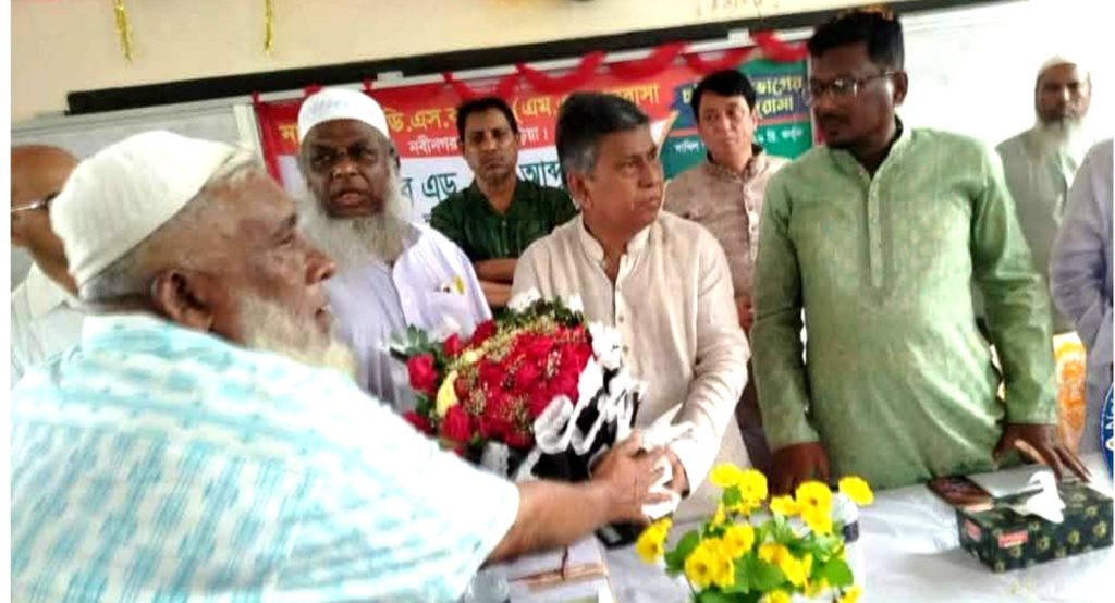 ব্রাহ্মণবাড়িয়া জেলার নবীনগর পৌর এলাকার নারায়ণপুর ডি. এস কামিল ( এম.এ) মাদ্রাসার অধ্যক্ষ মুফতি মোহাম্মদ রফিকুল ইসলামের সভাপতিত্বে এবং সহকারী অধ্যাপক এ.কে.এম. হাবিবুর রহমান হেলালের সঞ্চালনায় শনিবার সকাল ১১টায় প্রতিষ্ঠানের হলরুমে দাখিল পরীক্ষার্থীদের উদ্যোগে দোয়া মাহফিল অনুষ্ঠিত হয়। অনুষ্ঠানের প্রধান অতিথি ছিলেন ব্রাহ্মণবাড়িয়া ৫ (নবীনগরের) মাননীয় জাতীয় সংসদ সদস্য এডভোকেট মো: আব্দুল মান্নান। বিশেষ অতিথি হিসেবে উপস্থিত ছিলেন ব্রাহ্মণবাড়িয়া জেলা বিএনপি’র সহ-সভাপতি অ্যাডভোকেট আনিসুর রহমান মঞ্জু, নবীনগর উপজেলা বিএনপির সহ-সভাপতি ভিপি গোলাম হোসেন খান টিটু, জেলা বিএনপি’র সদস্য ও নবীনগর পৌর বিএনপি’র সাধারণ সম্পাদক মাসুদ রানা, নবীনগর উপজেলা বিএনপির সাংগঠনিক সম্পাদক আশরাফ হোসেন রাজু, দেলোয়ার হোসেন সোহেল, মাদ্রাসার গভর্নিং বডির সদস্য মো: আমির হোসেন, মোঃ ইব্রাহিম, মাওলানা নাজিমউদ্দি সহ অন্যান্য নেতৃবৃন্দ।অনুষ্ঠান প্রারম্ভের পূর্বে মাদ্রাসার ছাত্ররা মাননীয় জাতীয় সংসদ সদস্যকে গার্ড অব অনার প্রদর্শন করেন। অনুষ্ঠানের শুরুতে মাদ্রাসার প্রতিষ্ঠাতা মরহুম আব্দুল মোতালিব মাস্টারের সুযোগ্য বড় সন্তান ডাক্তার বশির উদ্দিন মাননীয় জাতীয় সংসদ সদস্যকে ফুল দিয়ে বরণ করে নেন। স্বাগত বক্তব্যে মাদ্রাসার অধ্যক্ষ মহোদয় মাদ্রাসার বিভিন্ন সমস্যার কথা তুলে ধরলে এমপি মহোদয় নগদ তিন লক্ষ টাকা অনুদানের ঘোষণা দিয়ে সকল সমস্যা ধীরে ধীরে সমাধানের আশ্বাস প্রদান করেন। সবশেষে অধ্যক্ষ মহোদয় দোয়া পরিচালনা করেন।